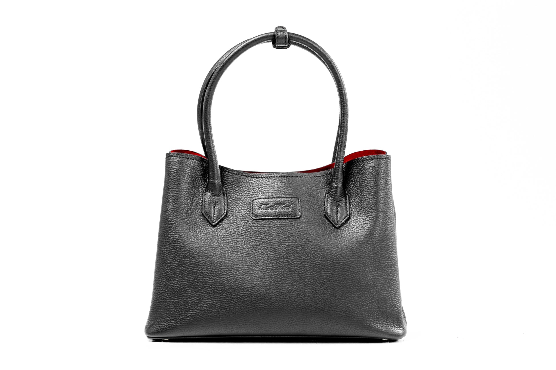 This elegant medium-sized leather tote combines timeless black leather with a luxurious red suede lining for a striking contrast. Designed with a secure middle compartment featuring a zipper lock, it keeps your essentials safe and organized. An extra-long strap allows for comfortable, versatile wear, making it the perfect accessory for both day-to-night sophistication and effortless style.