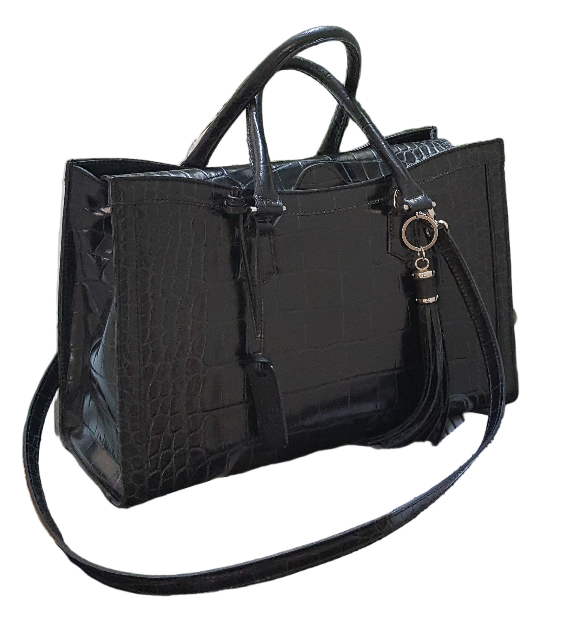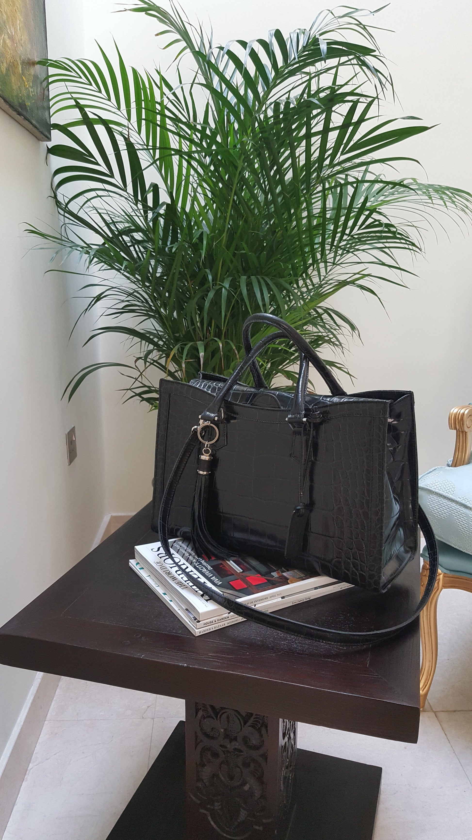 The Rei bag exudes effortless airport chic with its sleek embossed leather design. Featuring a detachable strap and tassel, it offers versatile styling options perfect for travel or daily use. Its refined texture and thoughtful details make it a sophisticated accessory that complements any outfit.