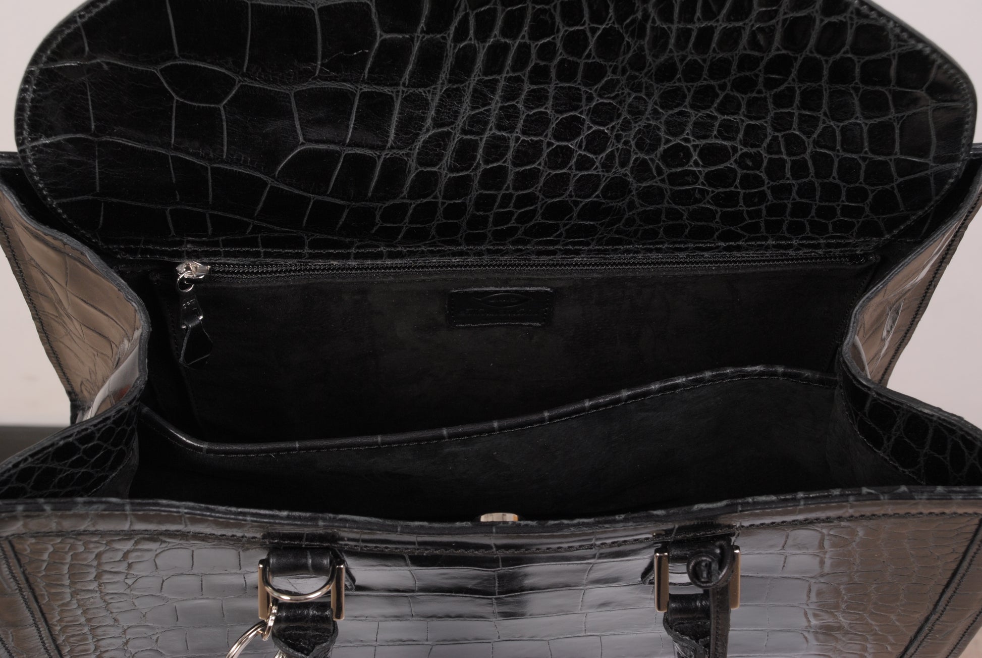 Embossed leather, lined with suede.
