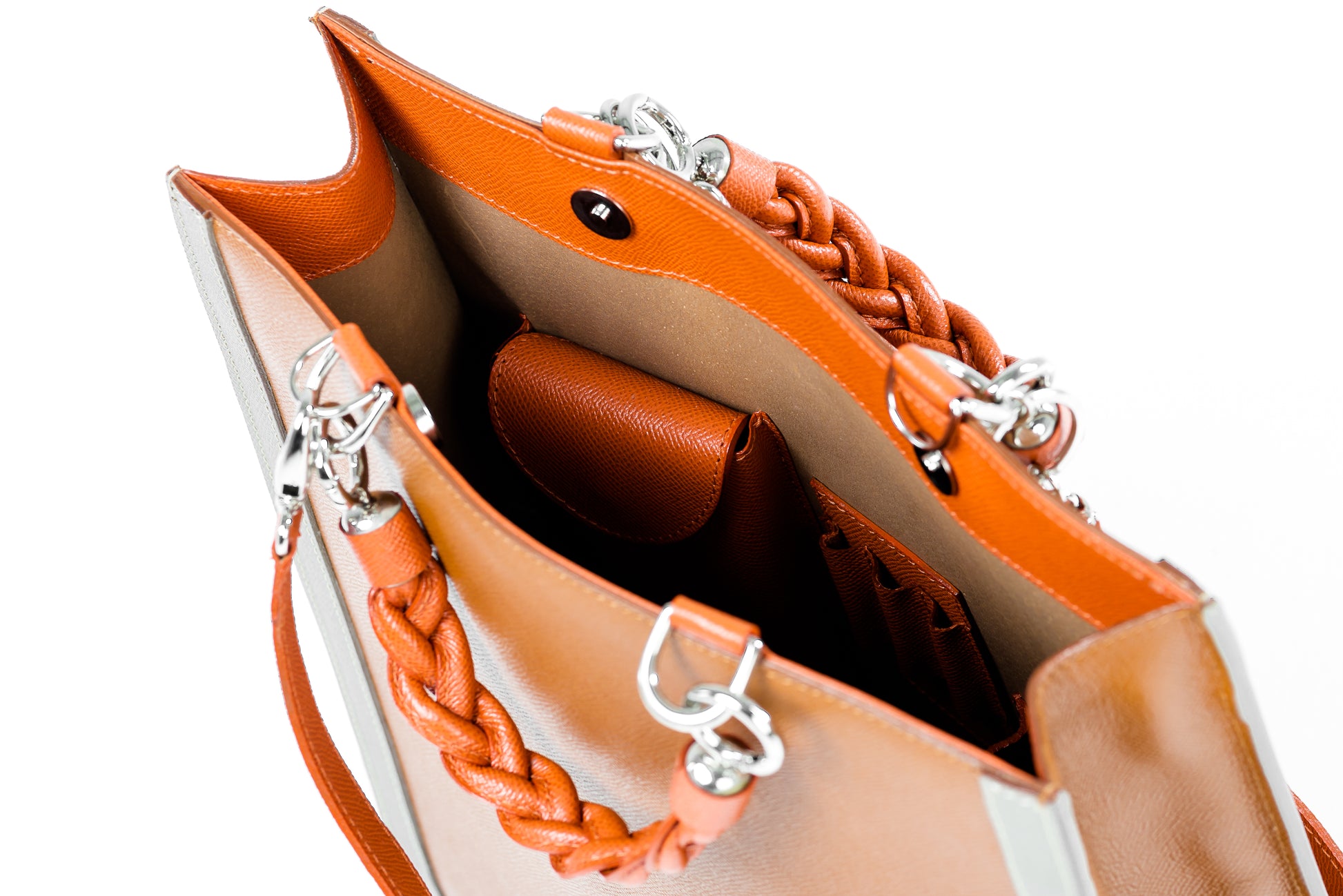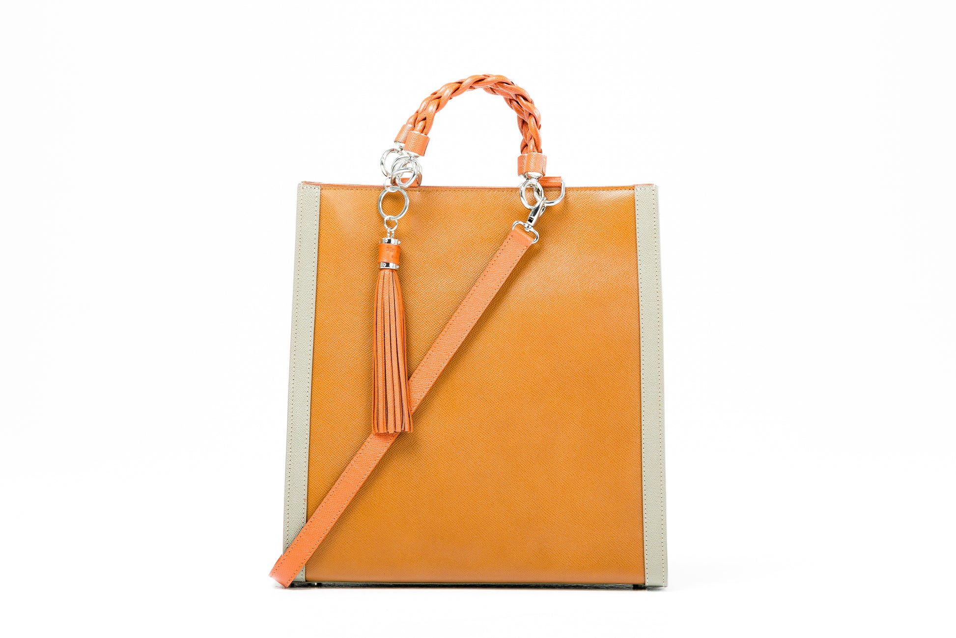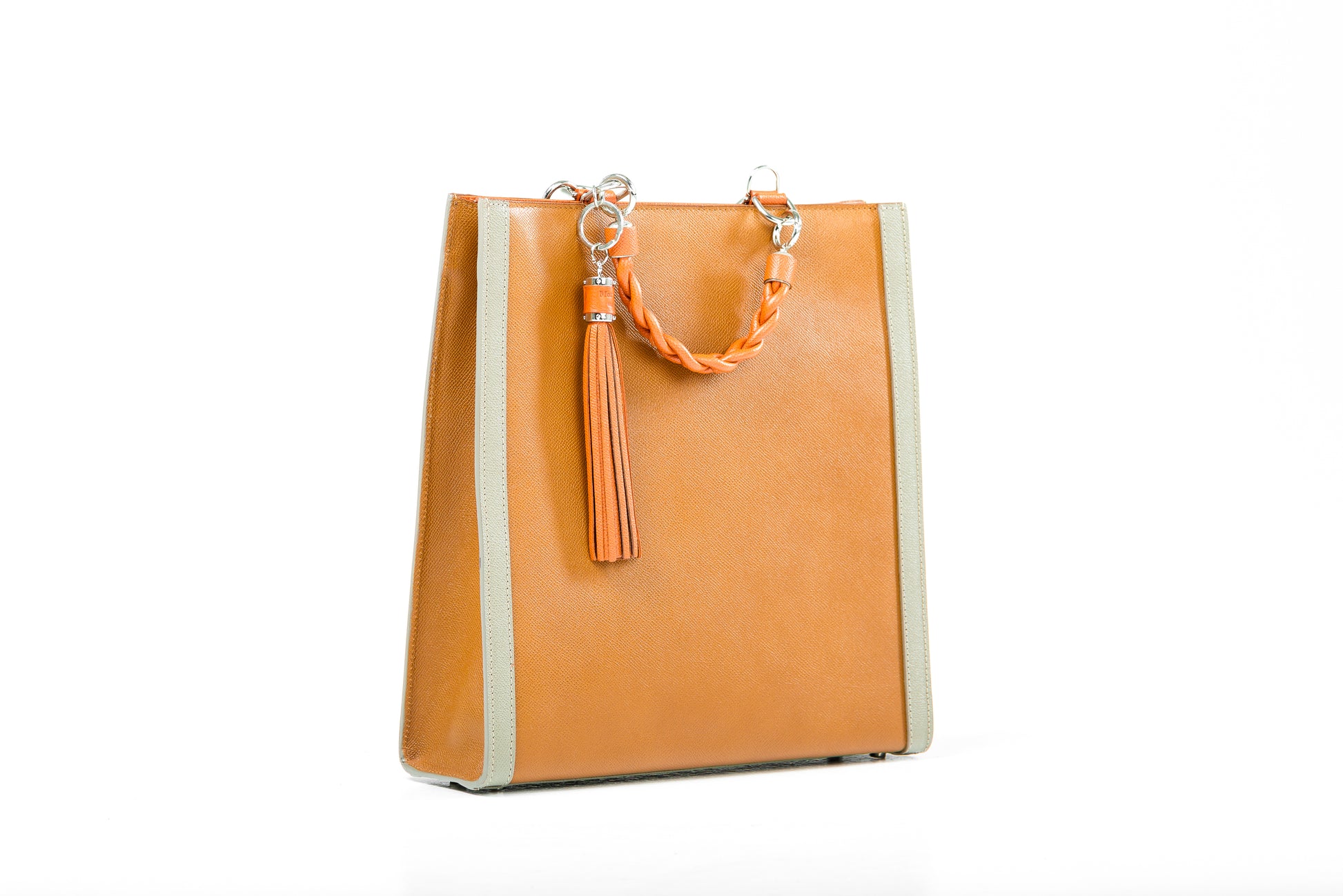 The Thalia tall tote bag is crafted for the sophisticated corporate woman, featuring a sleek leather design with a woven handle and an additional shoulder strap for versatile wear. Its rich autumnal hue complements the season’s elegance. Inside, dedicated pockets keep your phone and keys organised, while three individual pen hooks ensure you’re always prepared. Detachable tassels add a stylish, customisable touch to this practical yet chic accessory.